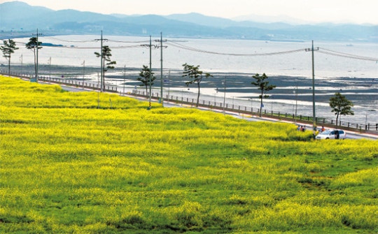 충남 서산 남쪽 끝자락의 간월도 일대는 유채꽃 신흥 강자다. 꽃밭의 역사는 짧다. 2013년 9월 서산시가 미분양 택지에 유채씨를 뿌린 것이 시작이었다. 현재는 약 5만㎡(1만5000평) 규모의 샛노란 유채꽃밭으로 거듭났다.