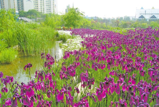 붓꽃은 우리에게 아이리스(iris)라는 이름으로도 친숙하다. 세계적으로 희귀하다는 붓꽃이 서울창포원에 130여 종 30만 본이나 식재돼 있다. 정문을 들어서자마자 오른쪽으로 돌면 1만5000㎡(5000평) 규모의 붓꽃원이 드러난다. 붓꽃원 중앙으로 유려한 곡선의 연못이 펼쳐져 있다. 연못 위 다리에 오르면 붓꽃 군락에 파묻히는 꼴이 된다. 구석구석 산책로도 잘 나 있어, 고불고불 돌아가며 붓꽃을 감상하는 맛이 있다.