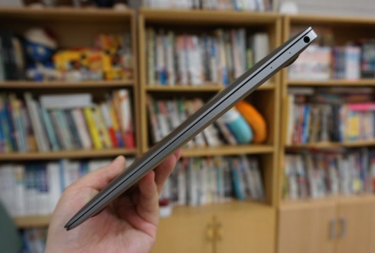 무게 배치도 매우 신경썼다. 대부분의 휴대용 노트북은 한손으로 열면 상판과 하판이 같이 들린다. 맥북은 다르다. 상판만 열리고 하판은 바닥에 찰싹 붙어있다. 상판의 무게를 최대한 가볍게하고, 무게의 대부분을 하판에 배치했기 때문. 사소하지만 나름 편리한 부분이다.