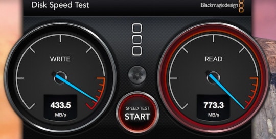 맥북에 탑재된 SSD는 읽기 속도 773.3MB/s, 쓰기 속도 433.5 MB/s로 측정됐다. 시중의 고급 SSD가 읽기 속도 500MB/s, 쓰기 속도 300MB/s 내외로 측정되는 점을 감안하면 약 1.5배 정도 성능이 더 뛰어난 것. 빠른 부팅(4초), 빠른 앱 실행은 두말하면 잔소리다. 앱을 실행할 때 멈칫대는 일 없이 빠르고 부드럽게 실행된다.